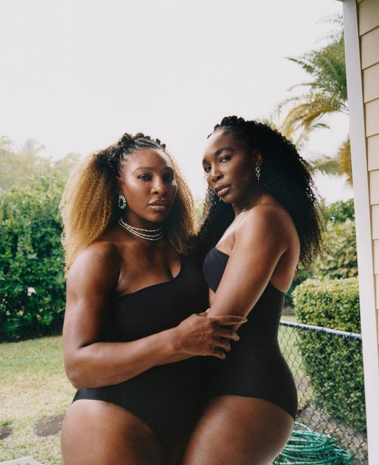 Тенис звездите са със сходни прически, едната е в бански на Norma Kamali, а другата на Sara Christina. Бижутата са на Cartier.