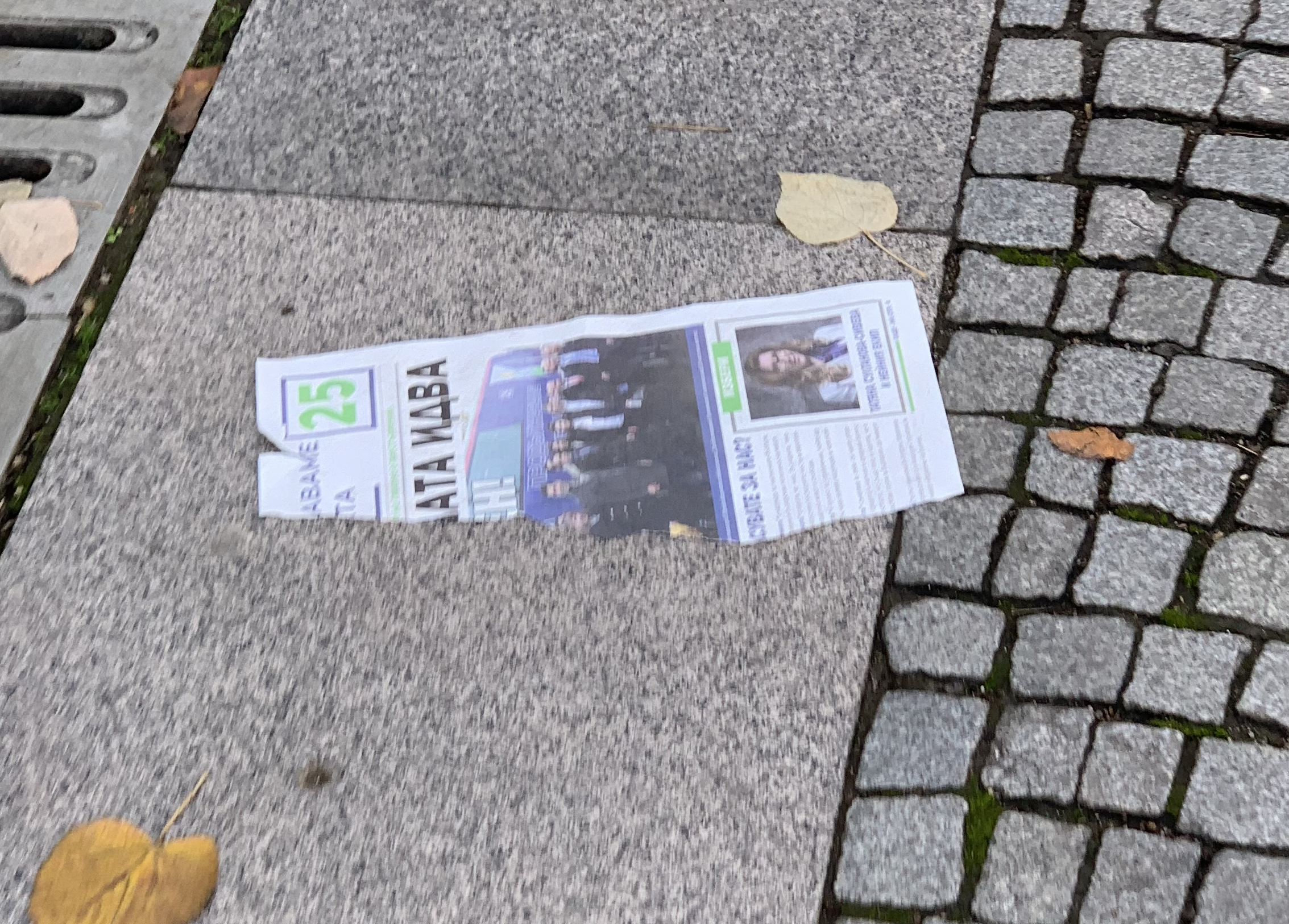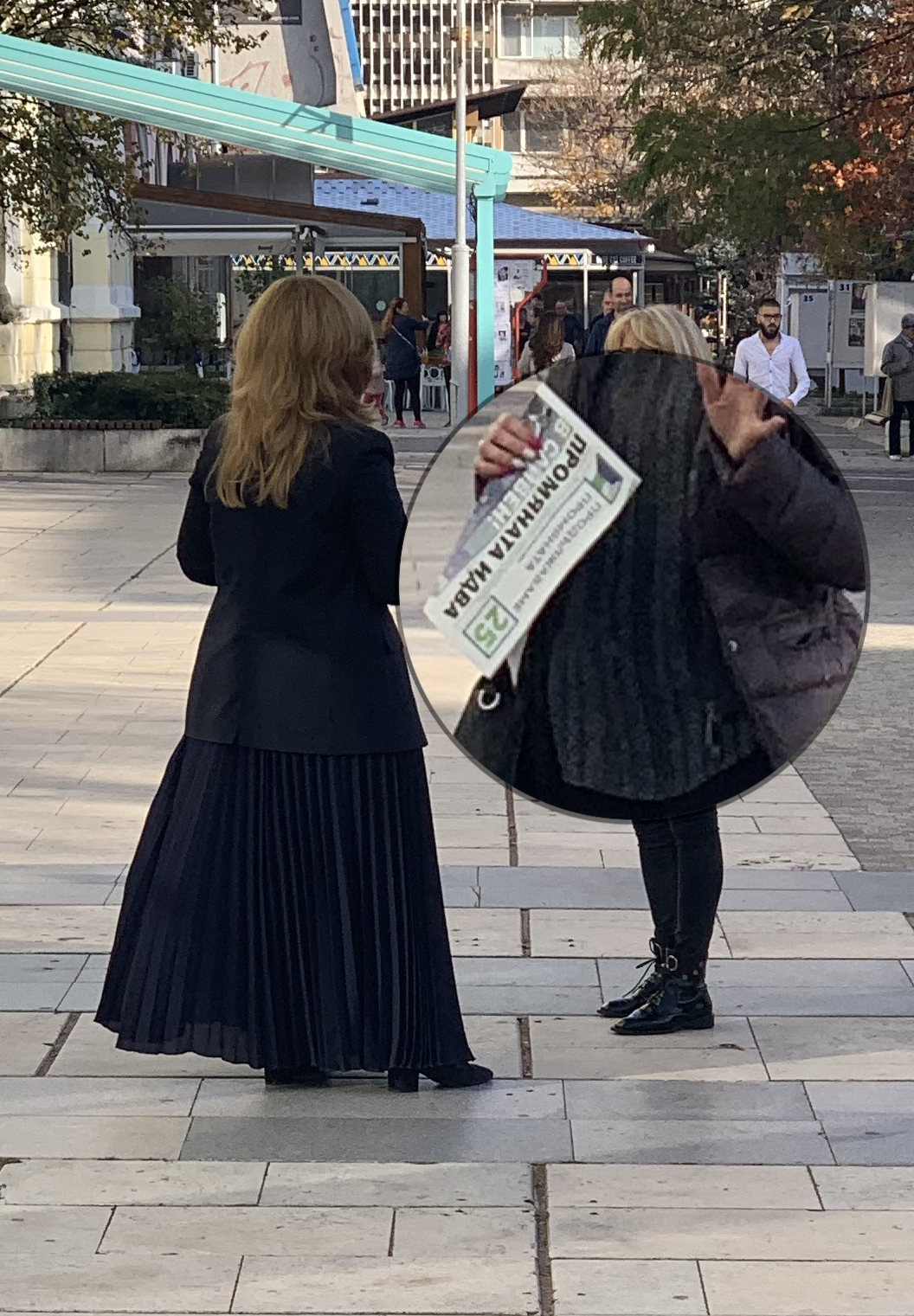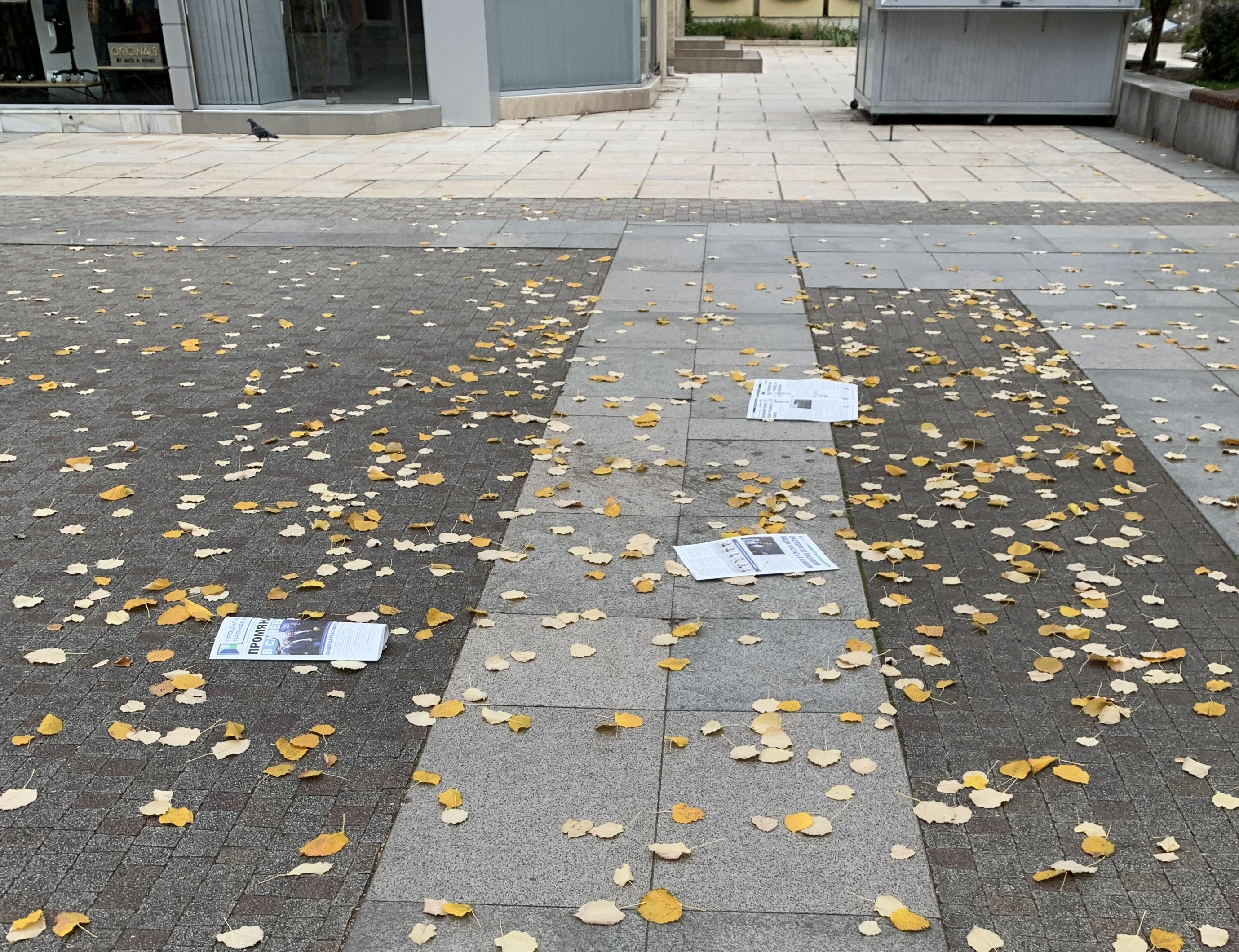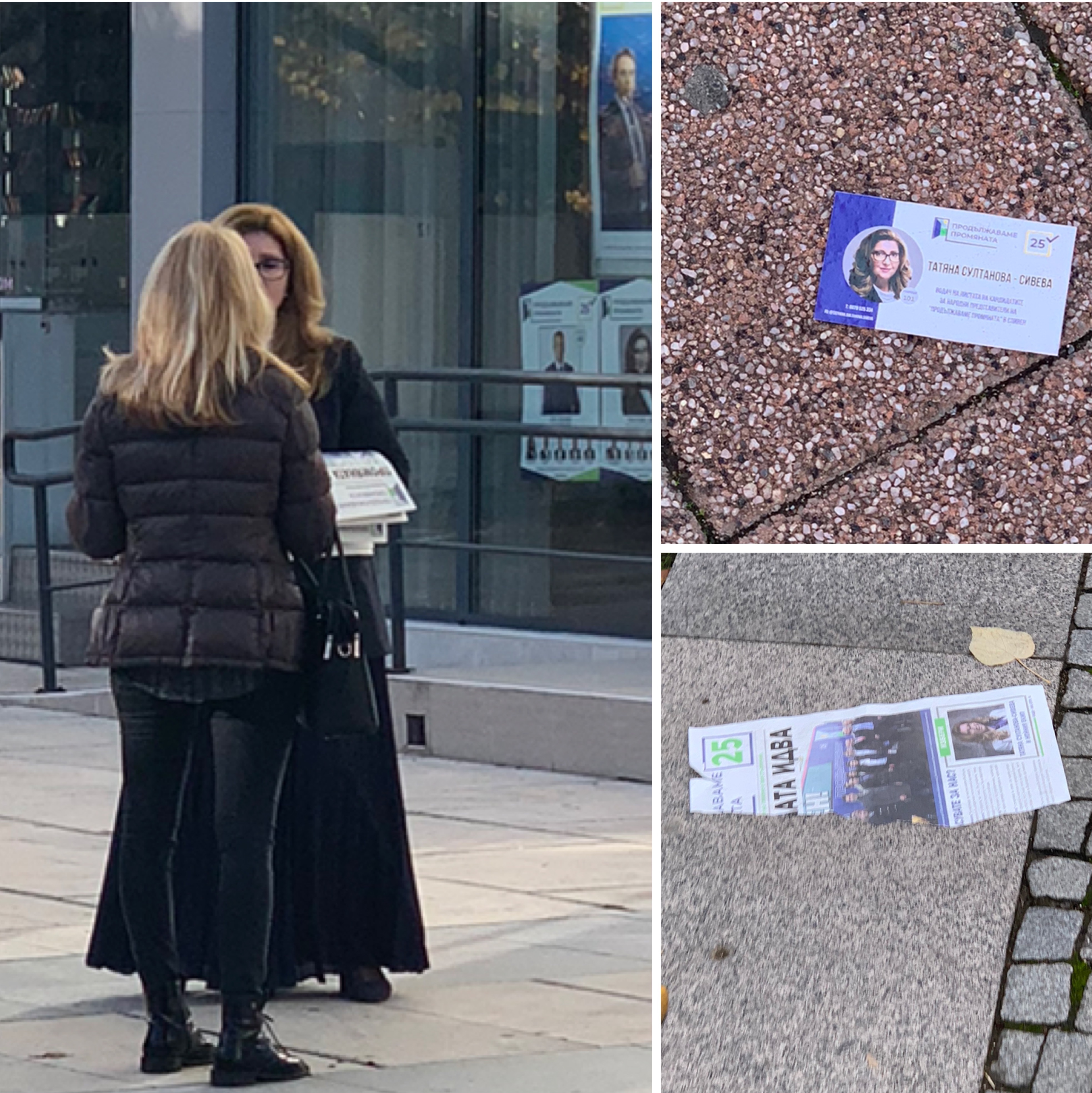 Често будката на "Продължаваме промяната" е оставена без надзор и вятъра или недоброжелатели разпиляват дипляните. Тук е важно да се отбележи, че те не са на рециклирана хартия - нищо, че водачката на листата е загрижена за екологията.