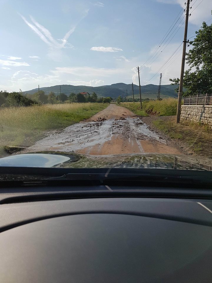 "Не се знае каква е била мисълта на кмета но всички може да видите резултата- вода, кал и падащи стълбове! Молим всички жители на града преминавайки по този път да се пазят от падащите стълбове! И не е излишно обуването на ботуши ако сте решили да се разхождате по това екстремно трасе", казват притеснени годечани.