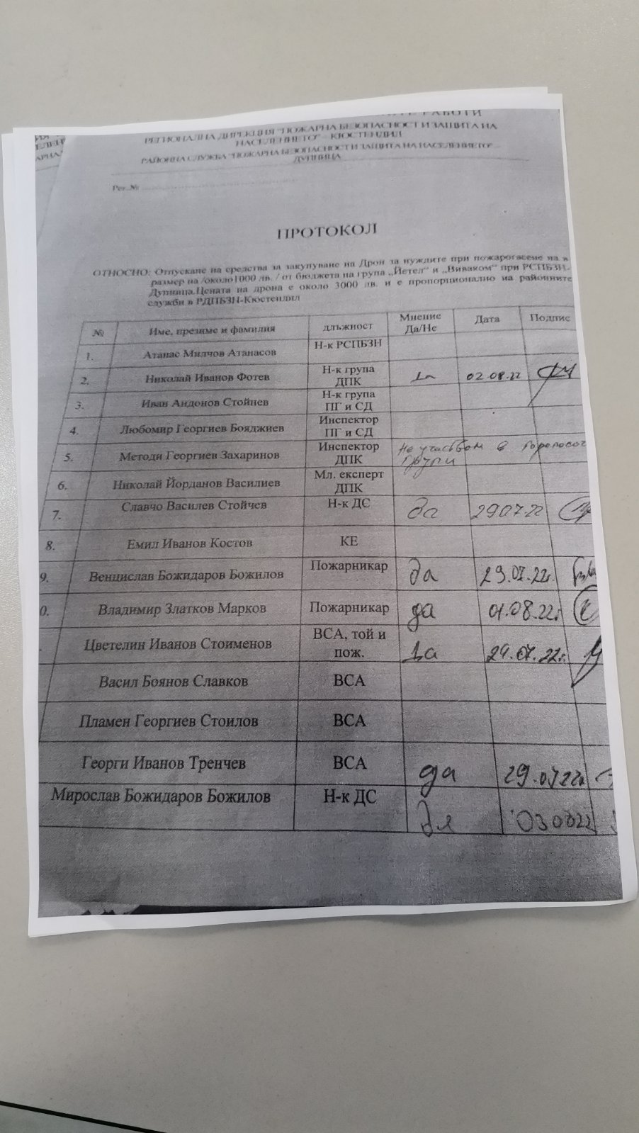Така се оказва, че голяма част от имуществото на РДПБЗН-Кюстендил като телевизори, таблети, спортни уреди и мебели е закупено от служителите на пожарната и техните близки. Една от последните покупки например е дрон с цена около 3000 лв..