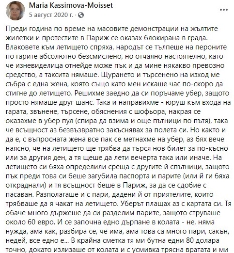 Използвайки същата медия, в частност постовете на самата Моасе, лесно се установява следното за периода януари-септември 2020:
