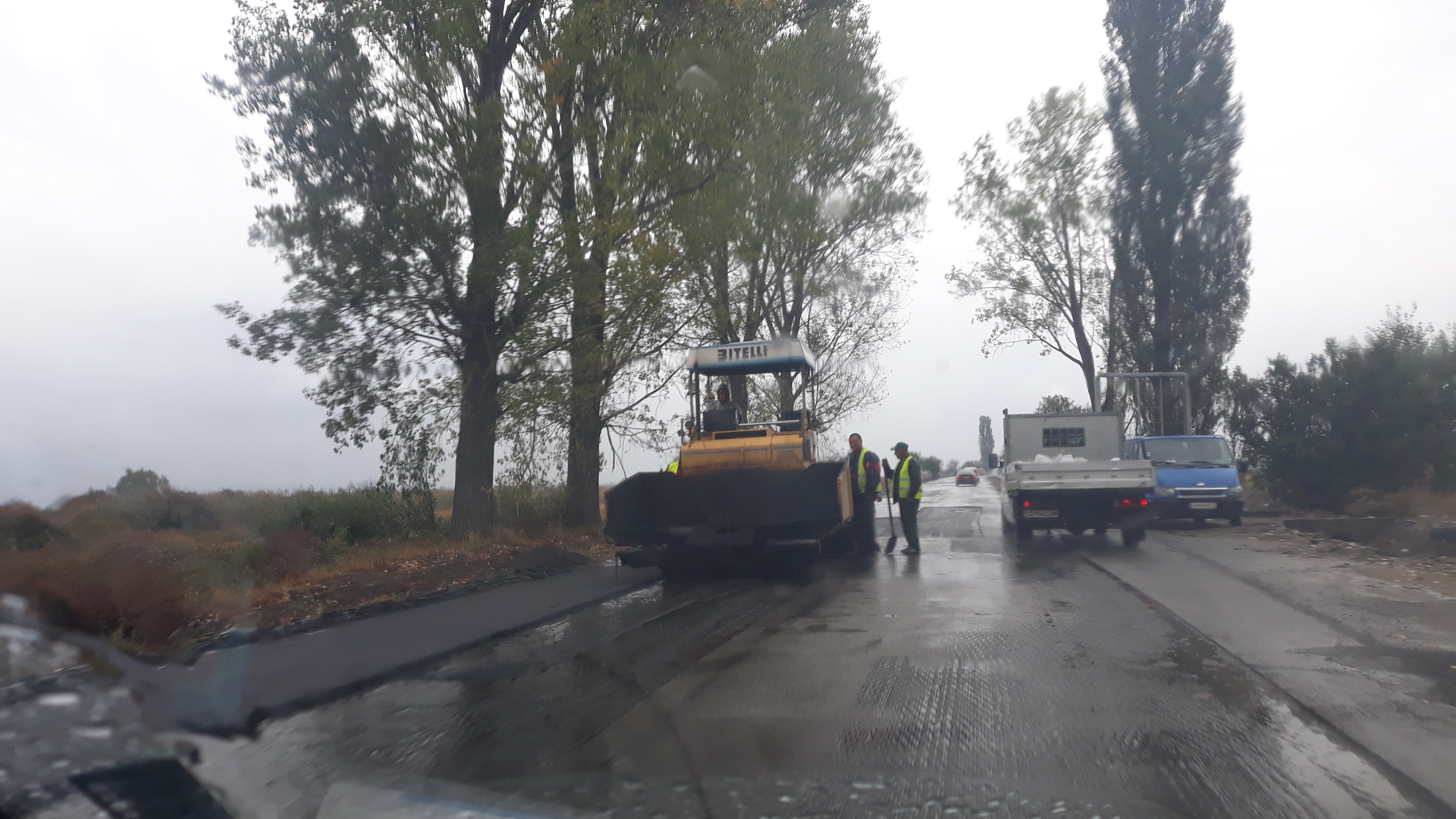 СИГНАЛ ДО ПИК: Пари на вятъра - асфалтират пътя Дупница-Самоков в дъжда (СНИМКИ)