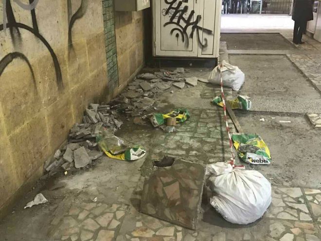 "От десетина дни се вадят плочи в подлеза (голяма част от които са здрави) и се правят някакви замазки с парчета. Подлезът изглежда много зле, стените са надраскани със спрейове", пише нашият читател.