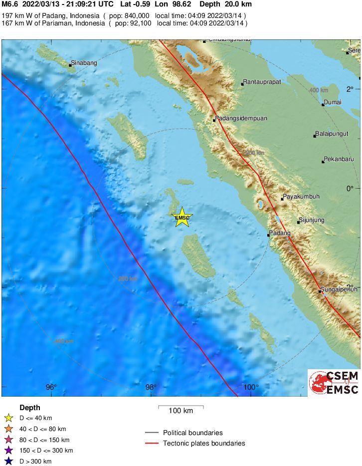 Силно земетресение с магнитуд 6,6 е регистрирано на западното крайбрежие на индонезийския остров Суматра, съобщи Геофизичният институт на САЩ, цитиран от Франс прес.