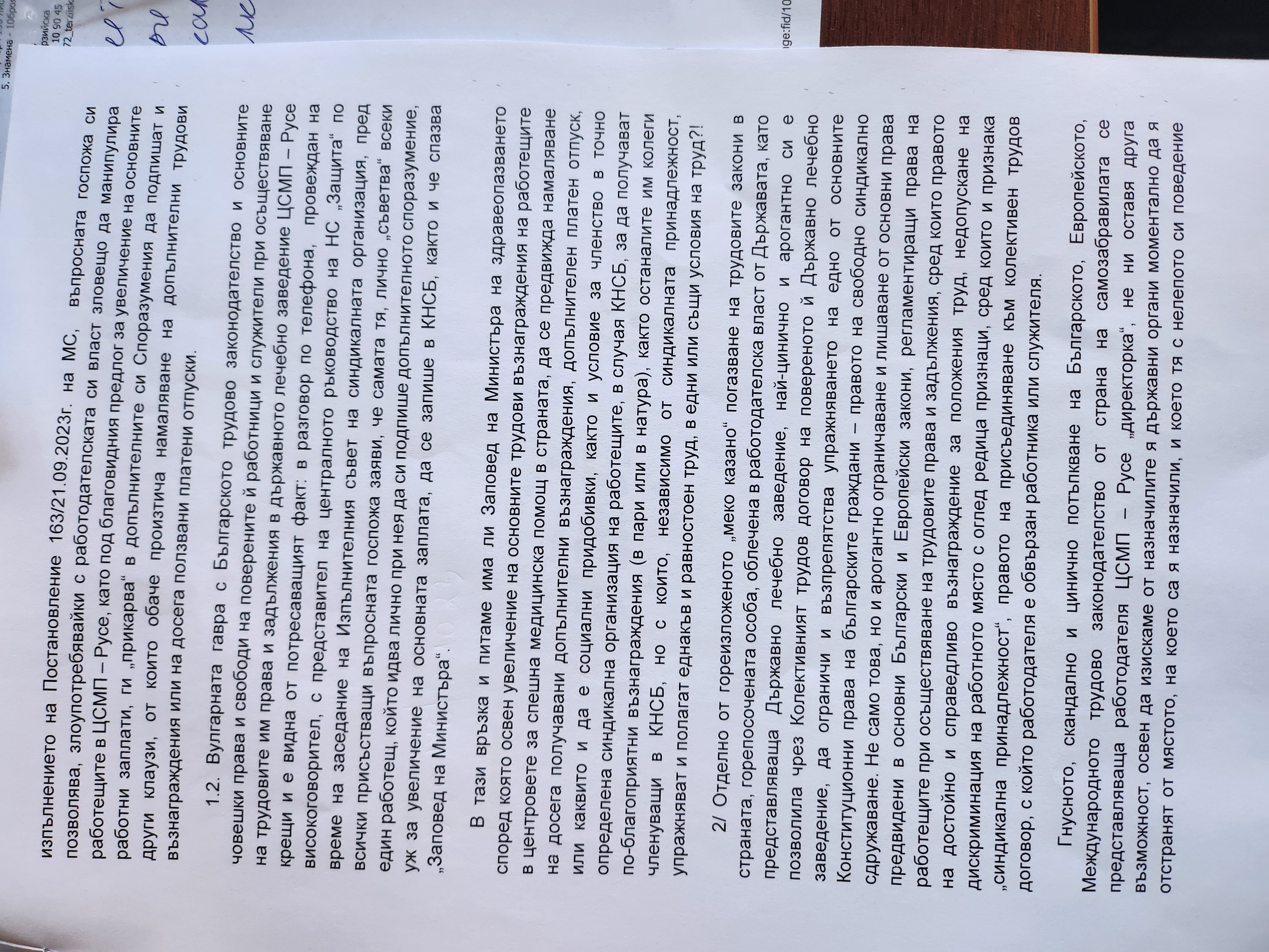 С огромно огорчение ви информираме за цинична злоупотреба с власт от страна на директора на ЦСМП-Русе, която си позволява покрай заповедта на министъра на здравеопазването за увеличение на основните заплати с 22% същевременно да изнудва работниците и служителите.
