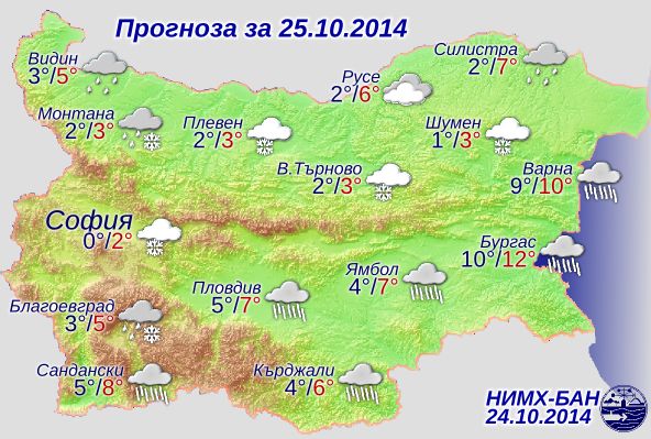 Започналите от югозапад валежи ще обхванат страната. Дъждът в Северна България и високите полета ще премине в сняг. Значителни ще бъдат валежите в Южна България, а слаби или почти без валежи ще е по поречието на река Дунав. Ще бъде ветровито. С умерен, в Дунавската равнина и Източна България и силен североизточен вятър ще нахлува студен въздух.