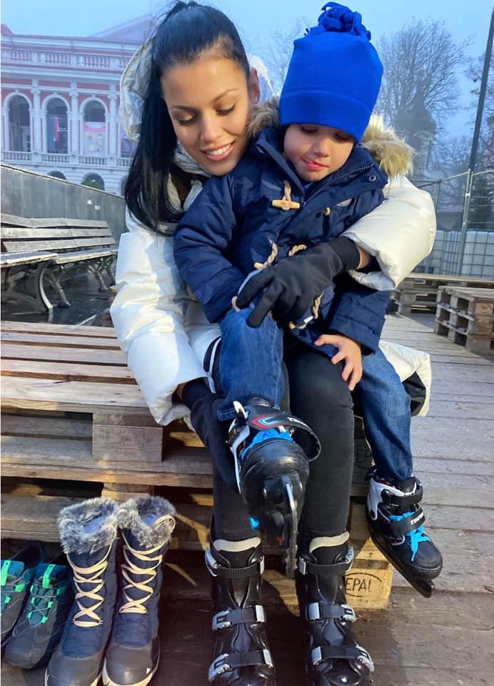 Вчера тя се попързаля на ледената пързалка заедно с малкото си момченце.