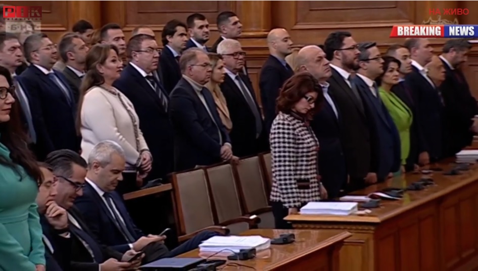 В момента, в който започна да звучи в залата, народните представители на "Възраждане" си седнаха на местата, а Костадинов и Цончо Ганев дори започнаха да си разглеждат телефоните и да се подсмихват.