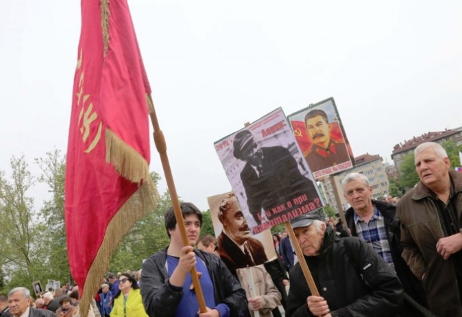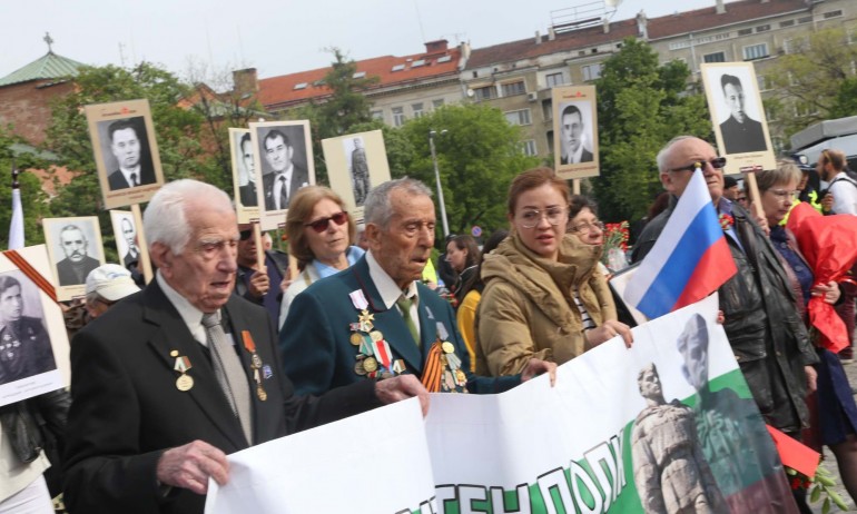 Така Радев се озова рамо до рамо с тъмночервени комунисти, които маршируваха със знамена на СССР със сърп и чук, флагове на Русия, ликовете на Сталин и Ленин. Шествието премина като същинска реклама на Русия със скандалното участие на президента, Корнелия Нинова и разбира се, руският посланик Анатолий Макаров.