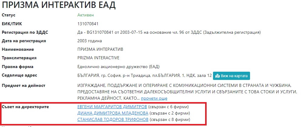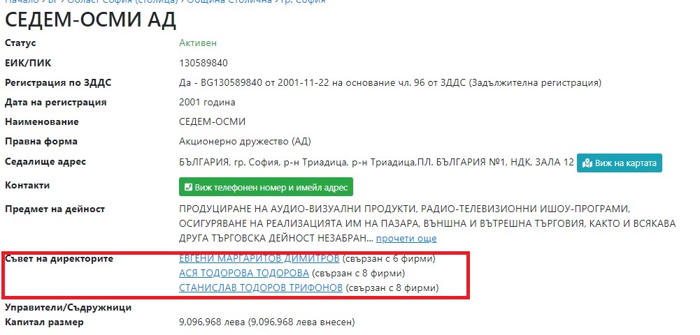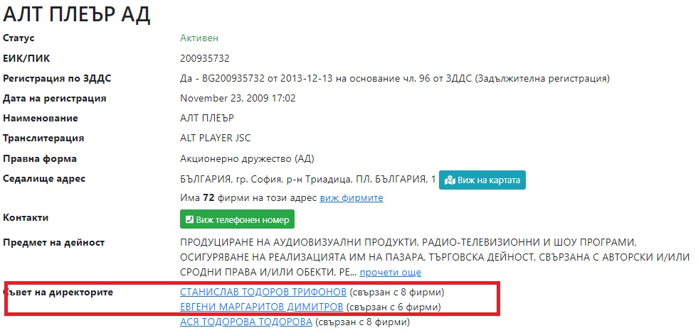 От нея ще се види, че Трифонов към момента на клетвата си в НС участва в бордовете на три фирми – „Седем-осми“ АД, „Алт Плеър“ и „Призва интерактив“. Справка в търговския регистър и към днешна дата потвръждава това, както и че няма подадени документи за промяна на актуалното състояние, така че да бъде отписан. Самият Трифонов обаче вероятно разчита, че санкция ще му се размине, тъй като животът на 45-о НС ще е кратък и така и няма да се стигне до проверки на депутатите за конфликт на интереси.