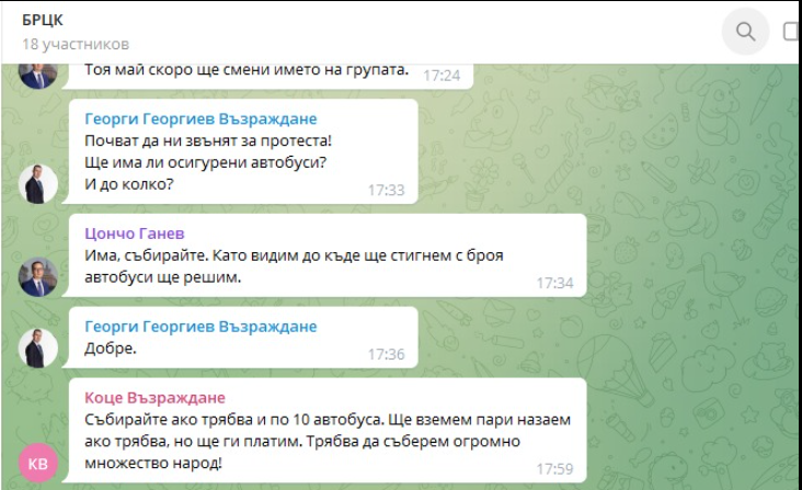 След консултациите при президента Румен Радев лидерът на "Възраждане" Костадин Костадинов обяви, че въпросният чат е бил фейк и посочи, че доскоро са казвали, че им плащат за протестите, а сега в чата излизало, че нямат пари и ще трябва да вземат назаем.