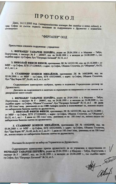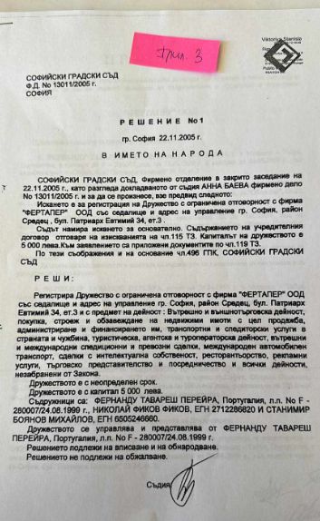„ФЕРТАПЕР“ ООД и Мария Перейра за 88 800 лева. (Виж прил.3).