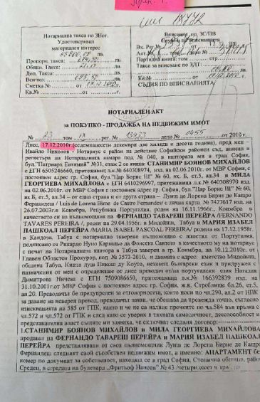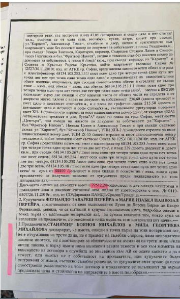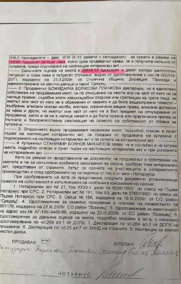 Той е подал декларация с невярно съдържание при имотна сделка. От документите, които прилагаме, се вижда, че на 17.04.2009 г. Станимир Михайлов купува апартамент 50 кв. м. на бул. "Фритьоф Нансен" за 30000 лева при данъчна оценка 29658.50 лв. (Виж прил.1)