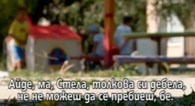 Сред епитетите, които използват лелите спрямо детето са: „Ти малоумна ли си?”, „Ти си като цял толуп”, „Абе, и ти си некадърен, бе!”, „Айде, ма, Стела, толкова си дебела, че не можеш да се пребиеш, бе?”, „Откога си тук, а не можеш да си обуеш пантофите на тея дебели краци!”.