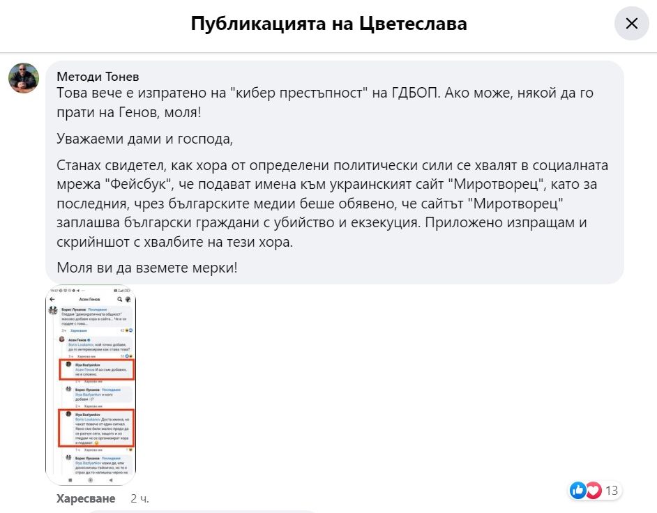 В социалната мрежа се появиха и самопризнания за това, че списъкът на "Миротворец" се попълва на местно ниво.