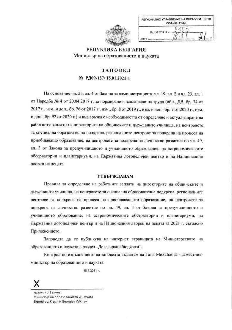 След заповед на министър Вълчев - ето колко става заплатата на директор на общинско или държавно училище