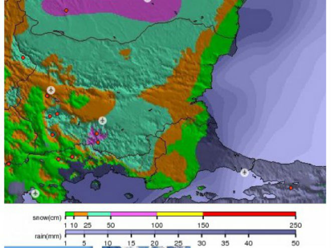 Снегът идва! 25 см в София, преспи от половин метър в Северна България! Вижте къде колко ще вали! (карта)