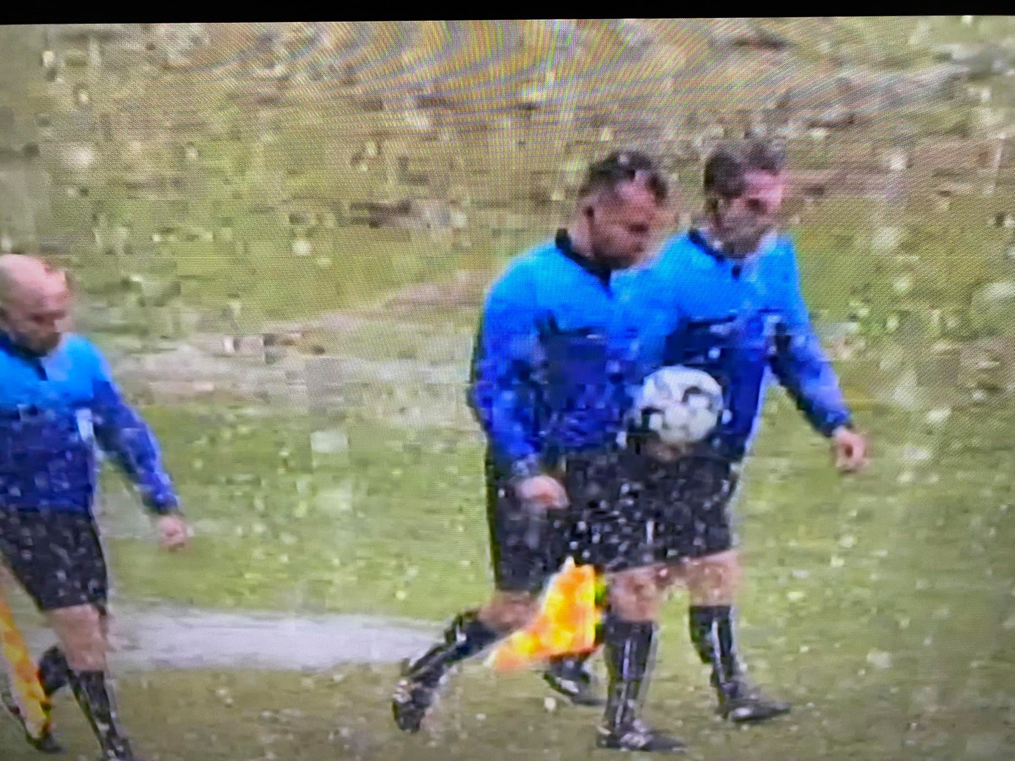 Обилен снеговалеж прекрати мача Миньор (Пк) - Септември (Сф) след първото полувреме преди минути. Съдията не разреши второто полувреме да започне на "Стадиона на мира" заради огромни локви по терена и разразилата се снежна буря.