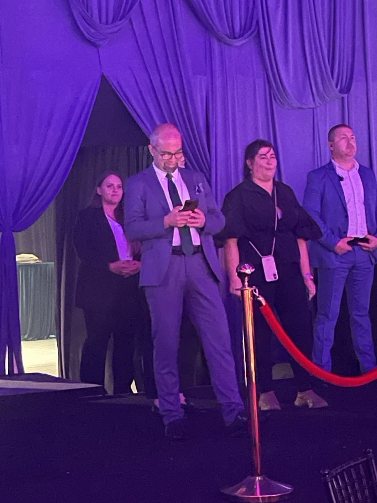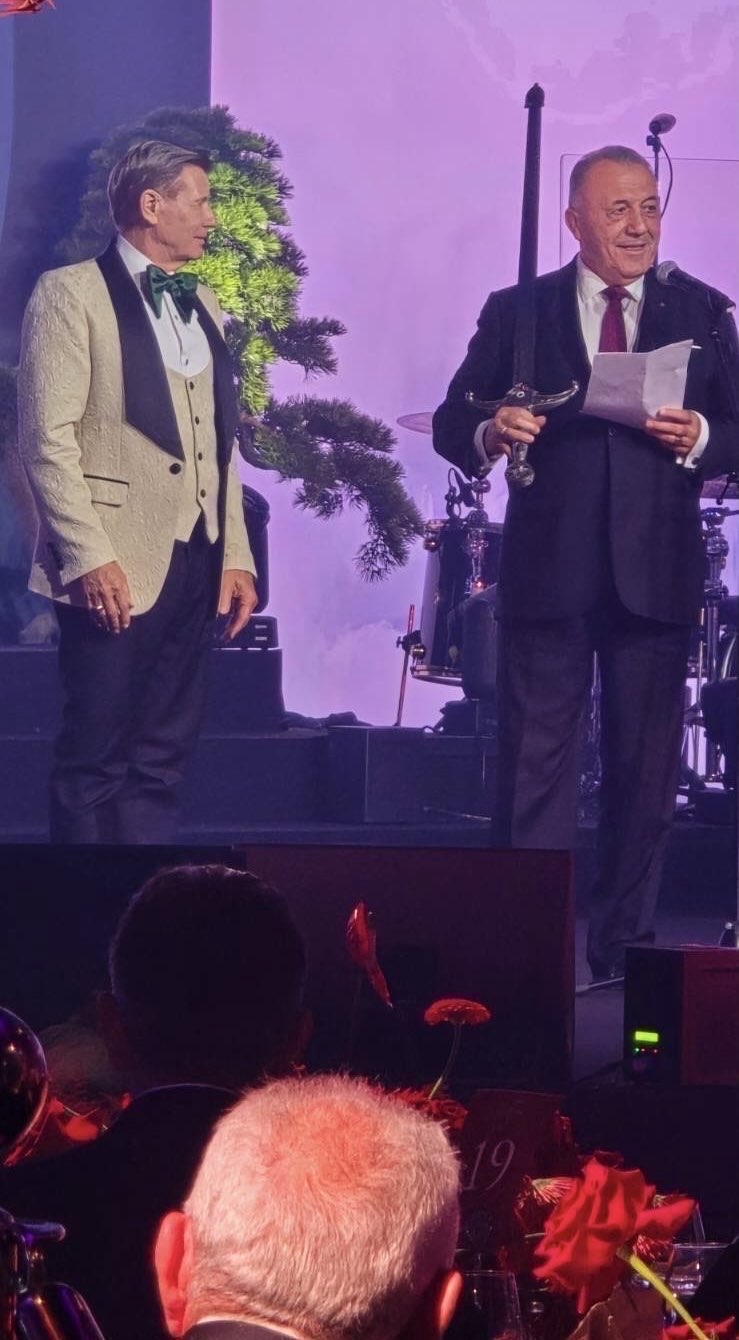 Тамплиерът Румен Ралчев, бивш шеф на охраната на Тодор Живков, поздрави с масонски поздрав юбиляря.