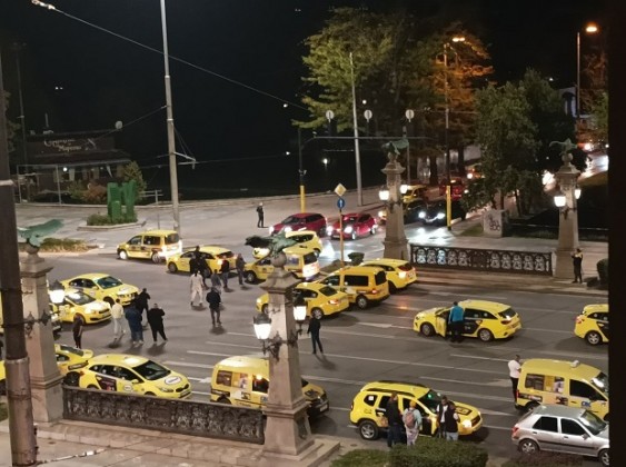 СРЕДНОЩНА БЛОКАДА НА СОФИЯ! Таксиметрови шофьори затвориха движението в центъра заради убийството на колегата си (СНИМКИ)
