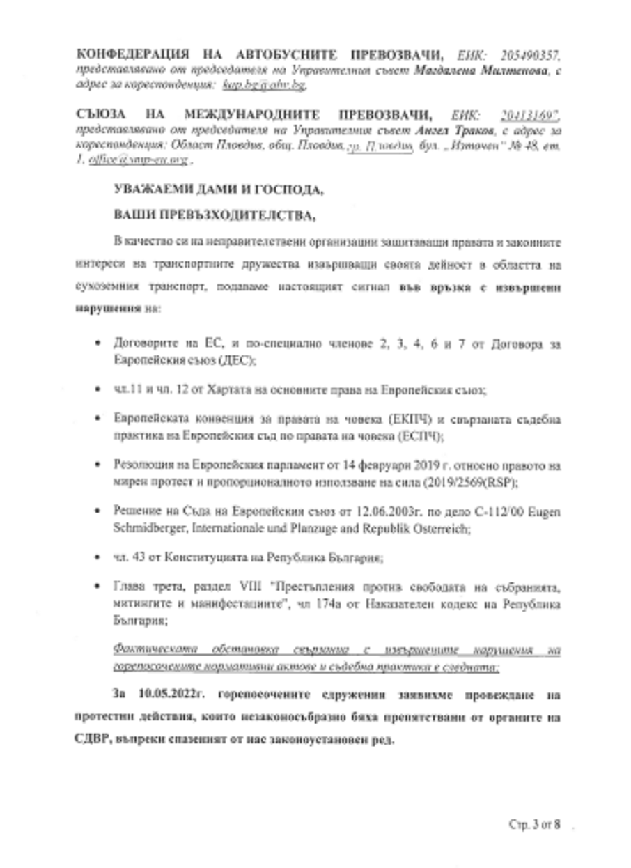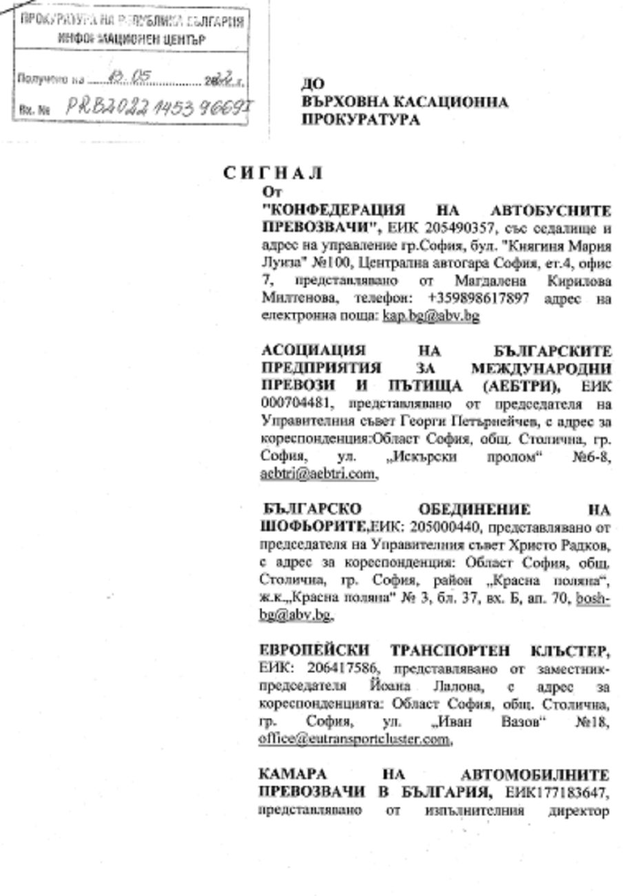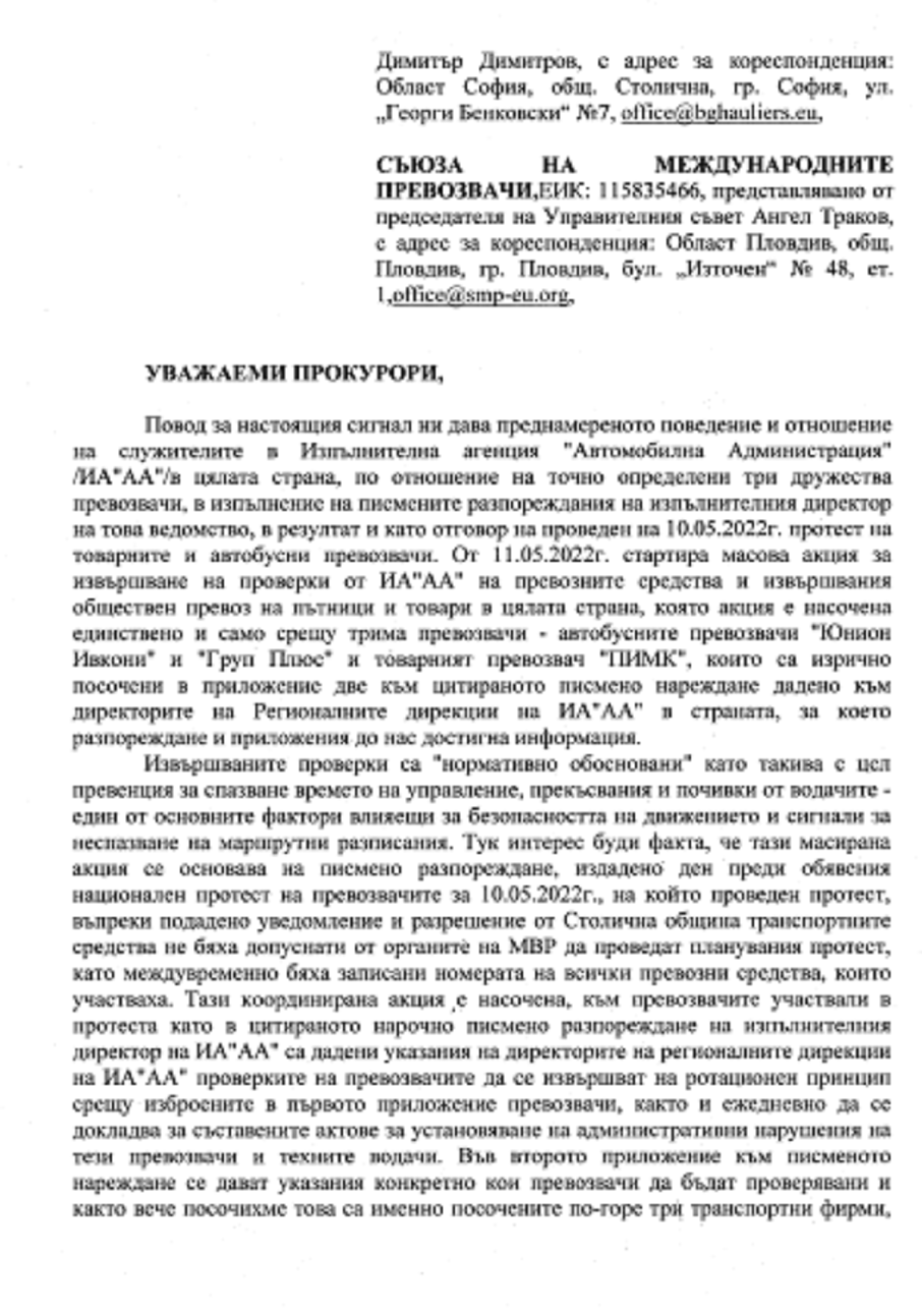 Сигнал за действията на най-имотния следовател и вътрешен министър в Европа, превозвачите са изпратили и до главния прокурор Иван Гешев.