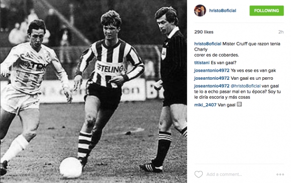 Българската футболна легенда Христо Стоичков си има любим човек, когато е в настроение да иронизира и осмива. Мениджърът на Манчестър Юнайтед Луис ван Гаал отново попадна под ударите на Камата, този път с изровена снимка от архивите. Навършващият само след три дни 50 години Стоичков публикува в Instagram снимка от дуел между Йохан Кройф и Ван Гаал.
