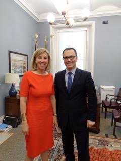 Стоян Мавродиев се срещна с Виктория Есър, помощник-секретар по публичните въпроси на Министерство на финансите на САЩ, в рамките на работното си посещение във Вашингтон. На срещата между председателя на Комисията за финансов надзор (КФН) и представителя на най-голямата финансова институция на САЩ, бяха обсъдени ключови финансови и икономически теми.
