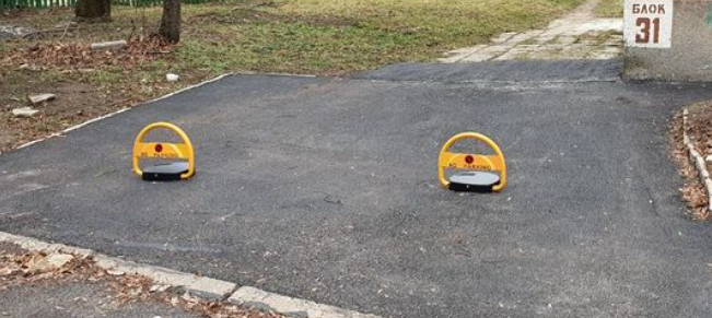 Човекът се е снабдил се е и си е инсталирал паркинг скоби, за да не може други да му спират на собствеността.