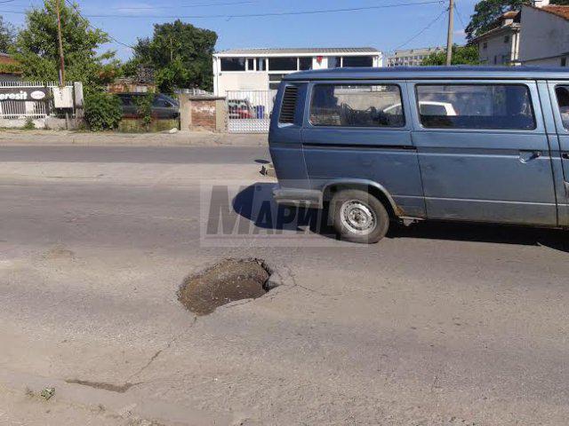 Страховита дупка дебне на входа на Коматево. Ямата е дълбока поне 20 см, предаде Марица.бг.