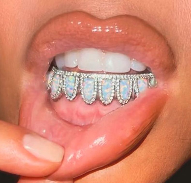 40-годишната риалити звезда публикува снимка в Инстаграм, на която показва новите си зъби. На фотото е заснета само устата й, а според описанието зъбите са направени от опал, "рамкиран" с диаманти.