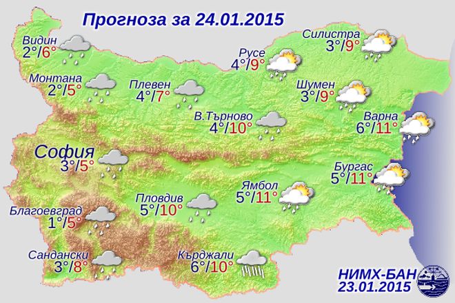 През следващото денонощие ще бъде облачно и отново на много места ще превалява дъжд, по-интензивен и продължителен главно в Южна България. От северозапад с до умерен вятър ще нахлува по-студен въздух. Във високите полета на Западна България, Предбалкана и на места в Дунавската равнина дъждът ще премине в сняг. Това съобщават синоптиците от Българската академия на науките (БАН).