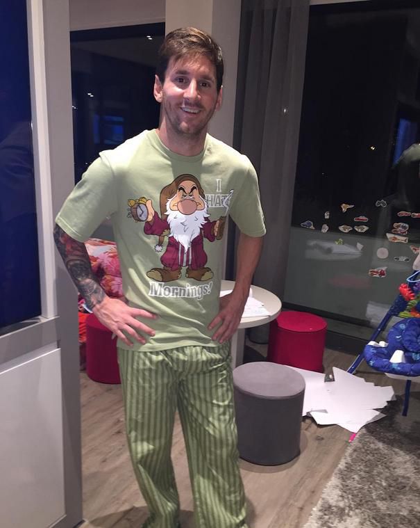 Аржентинецът публикува снимка в профила си в Инстаграм, на която позира с пижама, която е получил от Суарес.