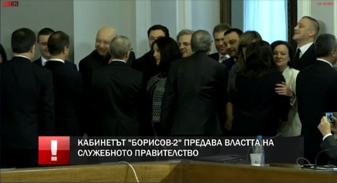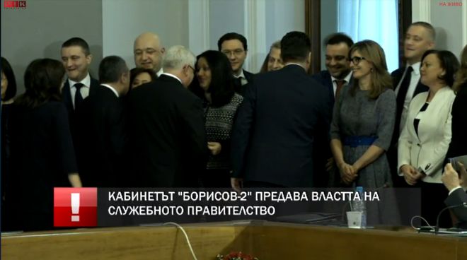 С безброй целувки стана смяната на властта на "Дондуков" 2, установи екип на ПИК. След приключването на официалната част, в която Бойко Борисов и Огнян Герджиков произнесоха кратки слова, досегашният премиер поздрави служебните министри. Те пък отидоха да поздравят един по един министрите от предходния кабинет.