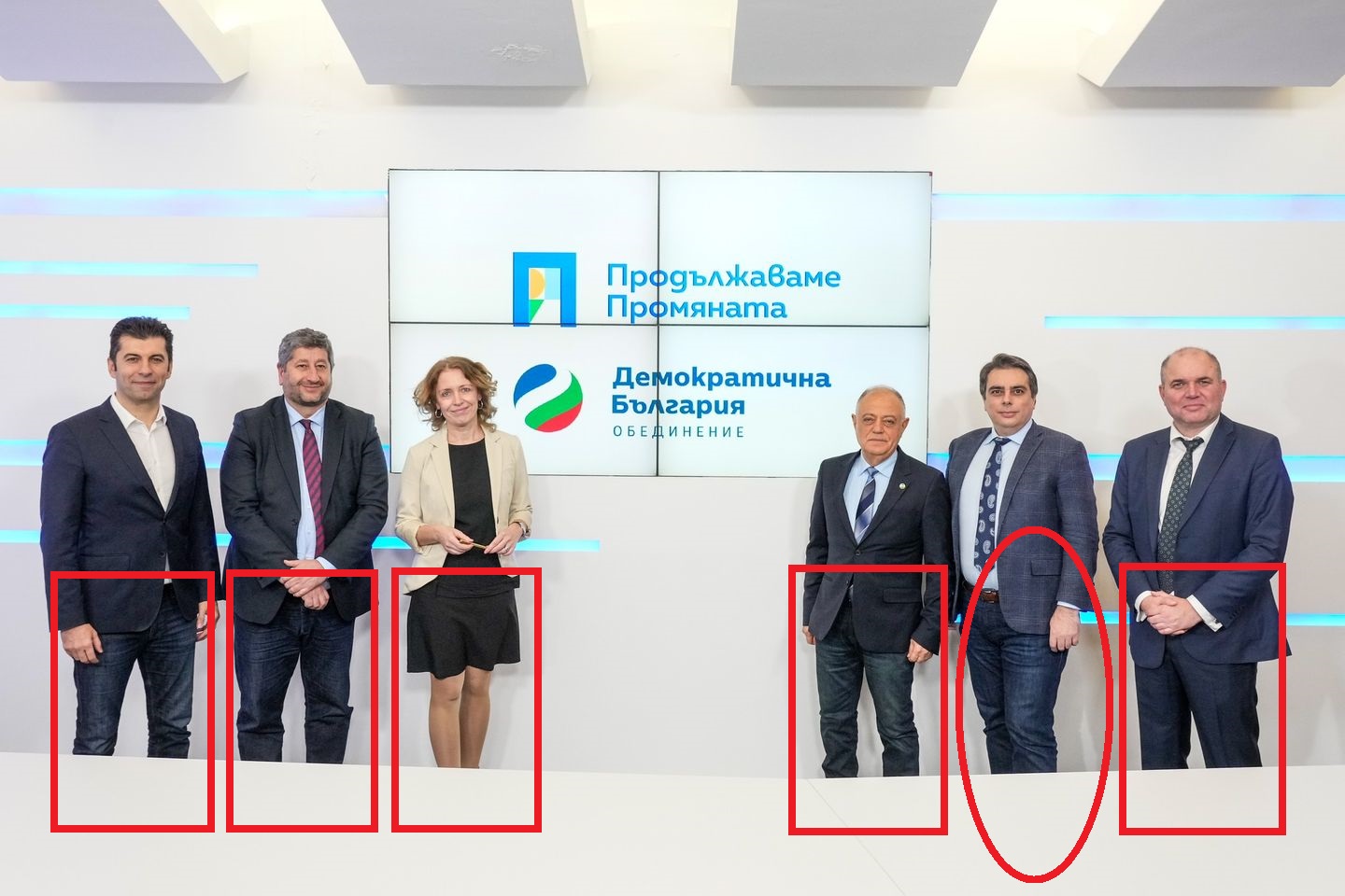 Кадърът окончателно затвърди и бездруго ширещото се впечатление, че най-голямата кокона в "Продължаваме промяната" не е нито Лена Борисловова, нито бившата вицепремиерка Калина Константинова, а... съпредседателят на формацията Асен Василев.