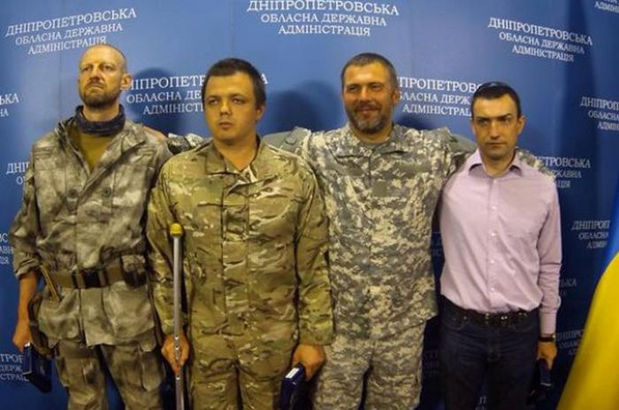 Тайнственият командир на страховития украински спецбатальон "Донбас" - Семьон Семьонченко за първи пъти си свали маската. Това стана в Днепропетровск, където той получи орден на името на Богдан Хмелницки лично от премиера Арсений Яценюк.