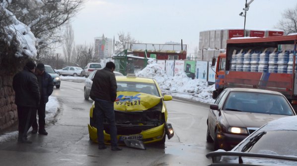 Таксиметров автомобил се удари челно в камион, превозващ минерална вода тази сутрин на улица „Никола Петков“ в квартал „Горна баня“ в столицата, съобщи Булфото.