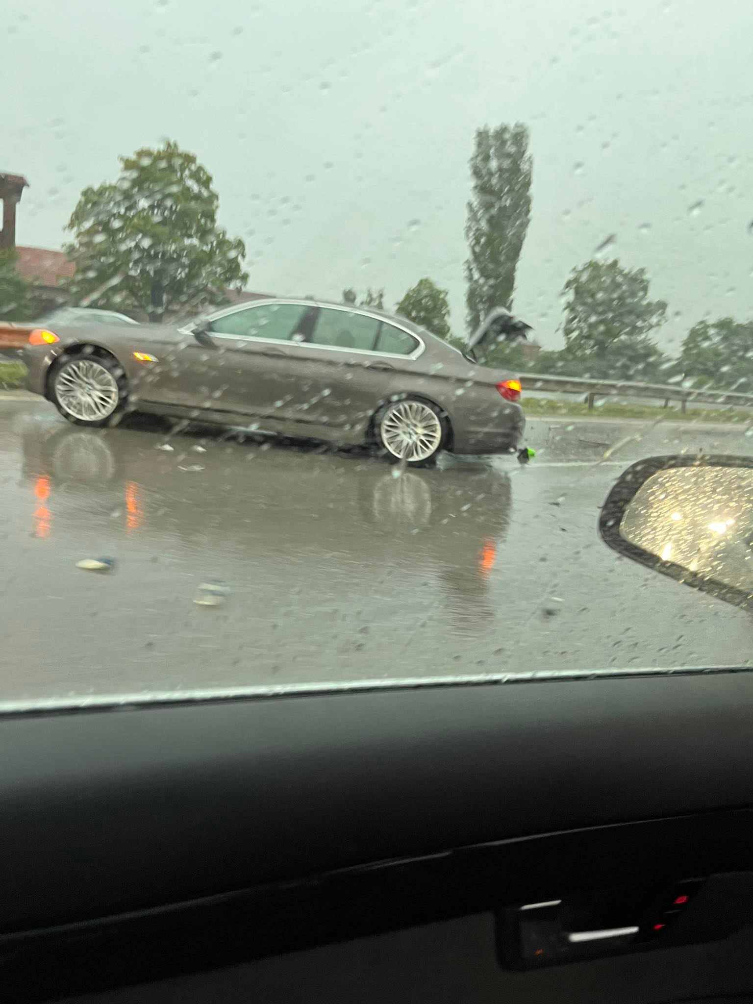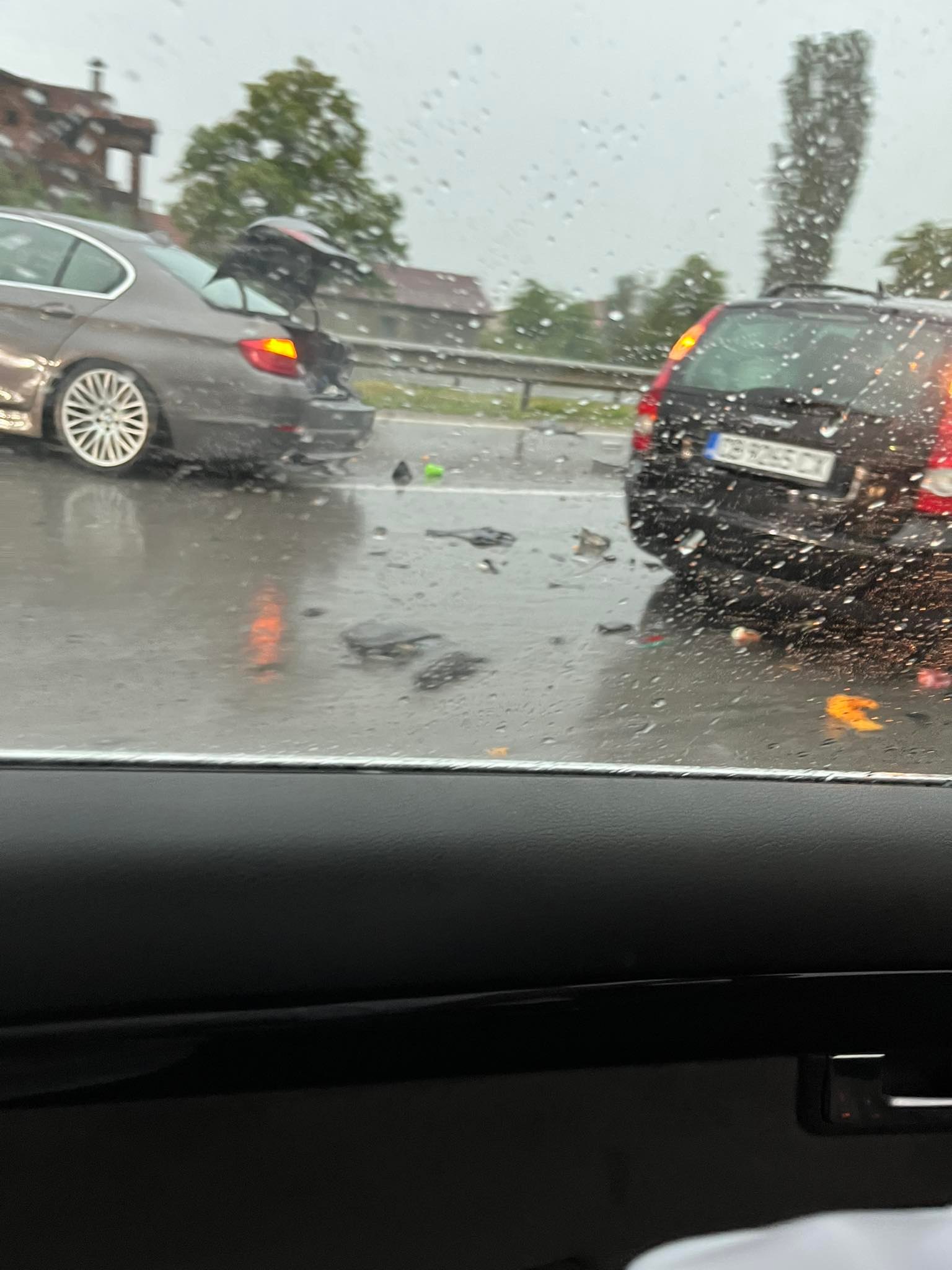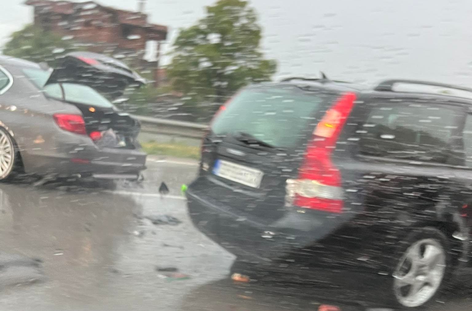 БМВ и Волво са се ударили. Вероятната причина е хлъзгавият път заради дъжда.