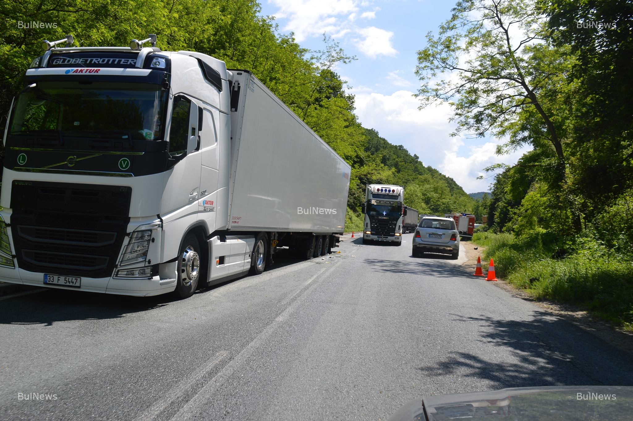 След удара ТИР-ът е спрял на пътя със спукани гуми от лявата му страна, а миниванът със софийска регистрация се е ударил в крайпътен скат. Двата автомобила са се движели с толкова голяма скорост, че разстоянието между тях е 250 метра. На мястото на катастрофата лежи млад мъж, който е паднал до дясната врата на колата.
