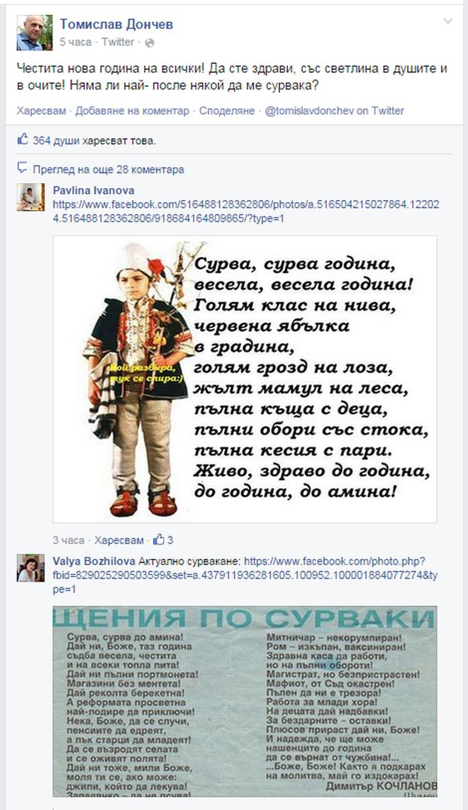 Честита нова година на всички! Да сте здрави, със светлина в душите и в очите! Няма ли най- после някой да ме сурвака?
