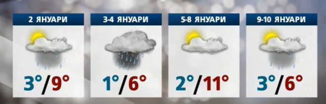 За първата седмица на януари, температурната аномалия е положителна. "Зимата тази година ще бъде във Великобритания и САЩ", заяви Кирилова. Между 8-ми и 14-ти януари се очакват леки превалявания.