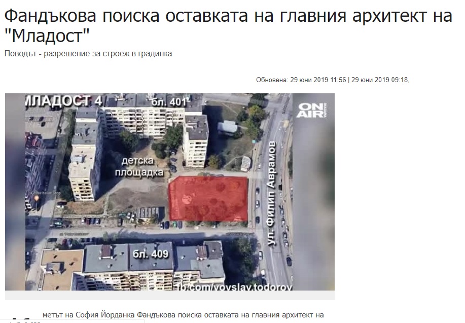 Разочарованите жители на Младост припомнят най-скандалния случай, в който арх. Стефанов разреши строеж на жилищна сграда в градинка до блок 401 в "Младост" 4. По проект новият блок трябваше да е само на 5-6 метра от прозорците на съществуващия, въпреки основателните протести на живущите в района.