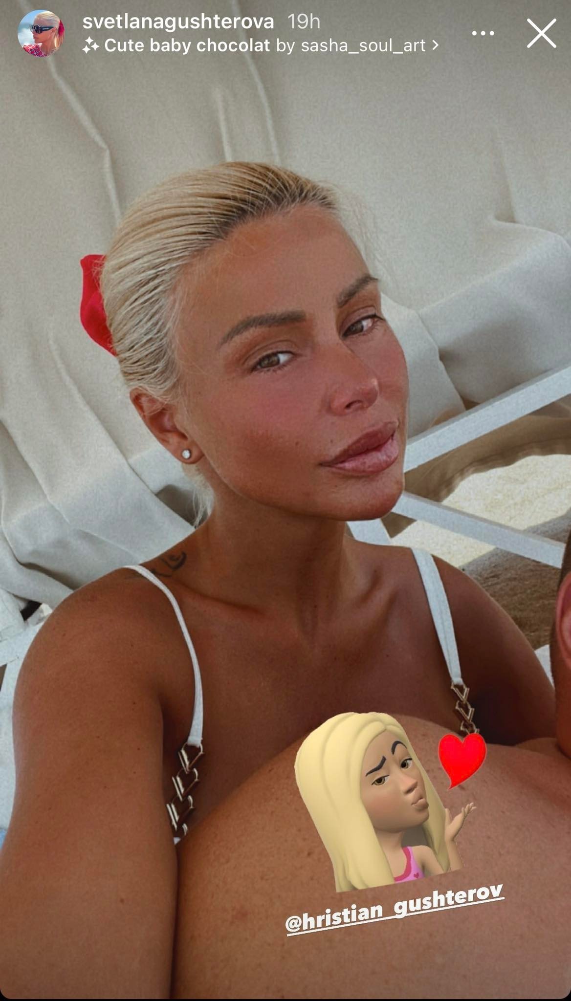 А доказателството, че Гущеров не дава пищната силиконова гръд на съпруга му да се наслаждават други мъже дойде от едно от последните й сторита от плажа. На него бизнесменът е скрил с рамо красотите на жена си.