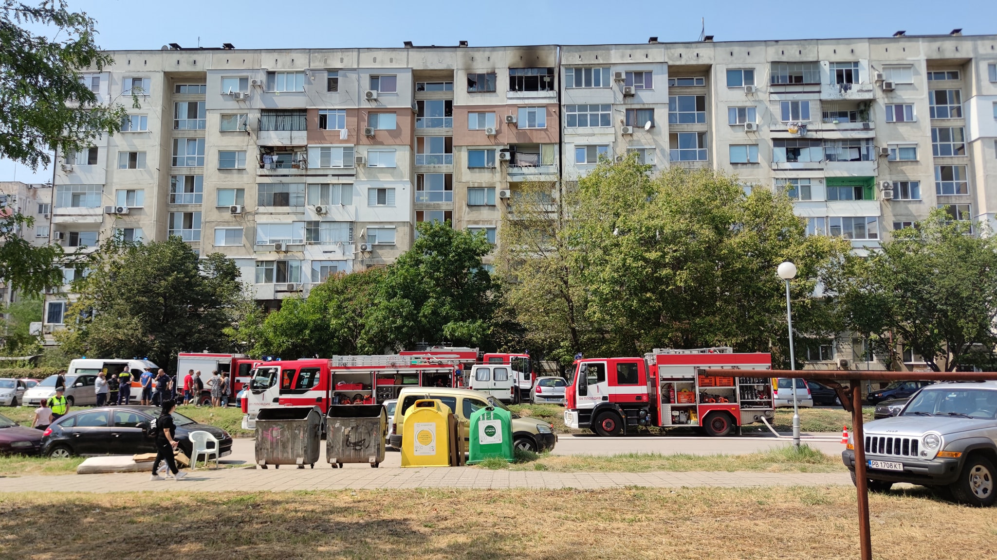 Според съседи, детето е загинало. Било с неговата баба в апартамента. По думите им, имали психични отклонения, но не създавали проблеми. Не е ясно как точно е предизвикан пожара. Съседите твърдят, че бабата е в тежко състояние.