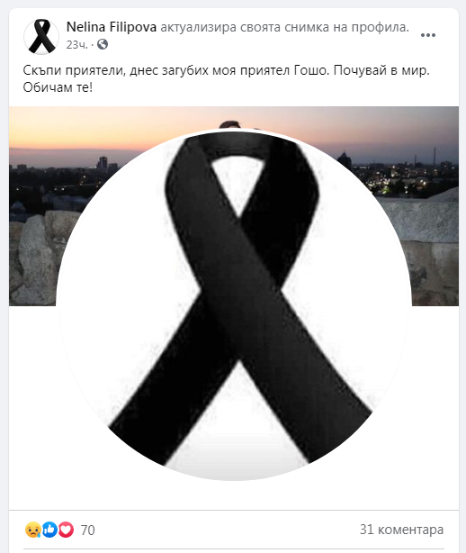 Скъпи приятели, днес загубих моя приятел Гошо. Почивай в мир. Обичам те! Постът е на Нелина Филипова във Фейсбук. Но жалейката, качена от 18-годишната девойка, предизвика не само съчувствие, но и вълна от негативни коментари. Нелина е момичето, което е в основата на трагедията, разтърсила Садово. Вчера със законния пистолет на баща си се застреля 21-годишният Георги Костадинов.