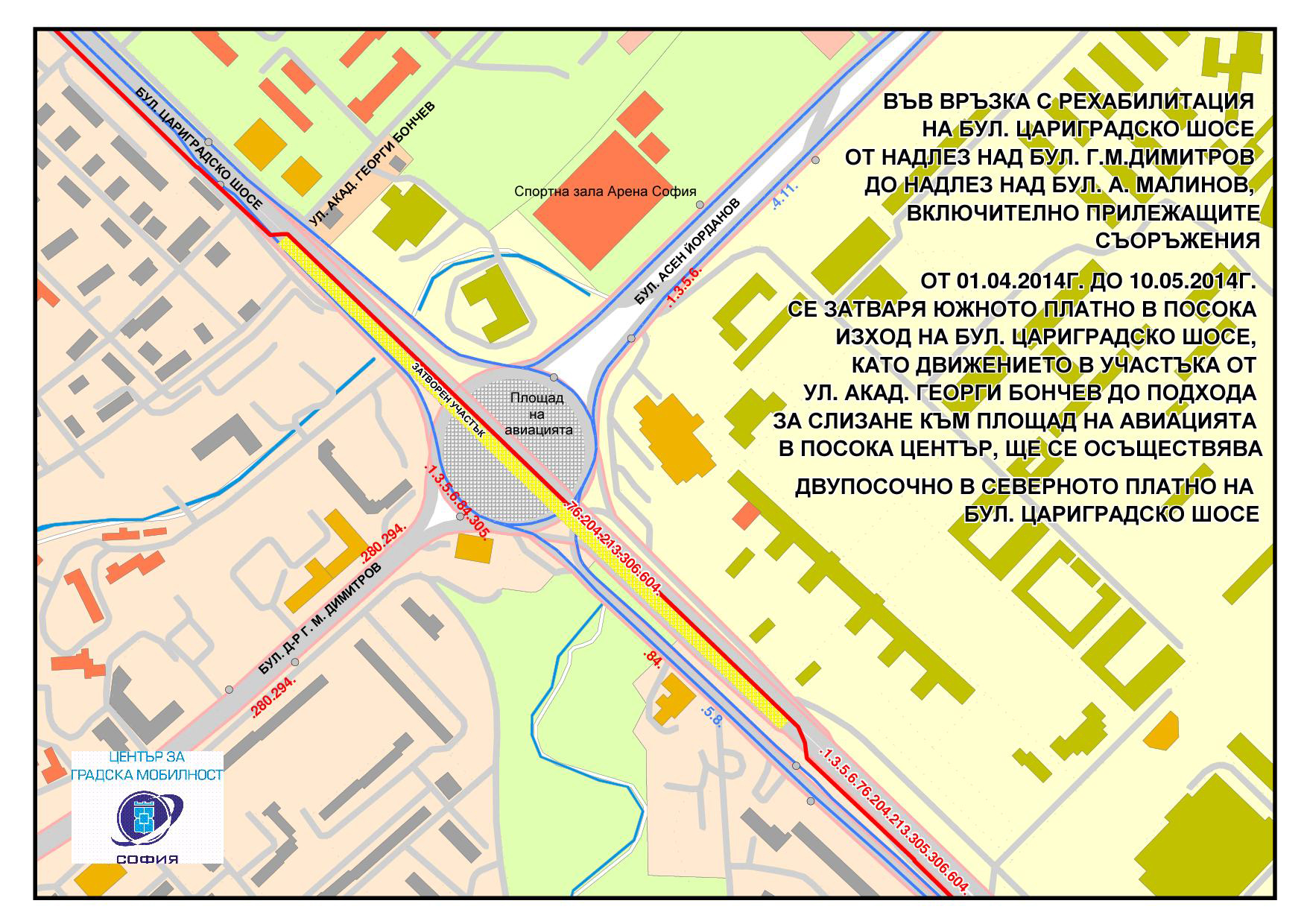 От Столичната община съобщават, че строително-монтажните работи включват надлеза по бул. "Цариградско шосе” при бул. "Г.М.Димитров”, надлез по бул. „Цариградско шосе” над бул. „Александър Малинов”, пешеходен подлез под бул. “Цариградско шосе” при Окръжна болница, рехабилитация на централни и локални платна на булеварда от надлеза над бул "Г.М. Димитров" до надлеза над бул. "Александър Малинов". Строителните дейности включват и рехабилитация а подлеза "Царевец" на Орлов мост, която се извършва в момента.