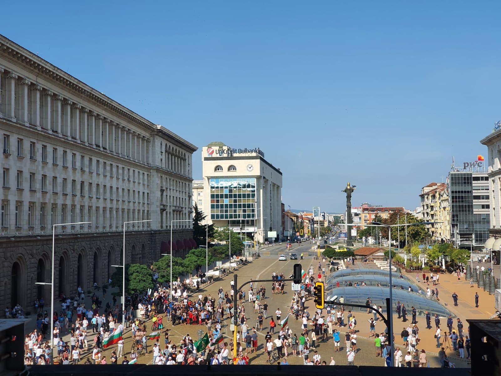 Днешният "протест" е една огромна раздухата манипулация, разкриват в социалните мреги присъстващи. На площада пред Народното събрание в момента има малко над 1000 души, но са струпани при кордона на полицаите. Именно там се хвърлят предмети и униформените се обгазяват.