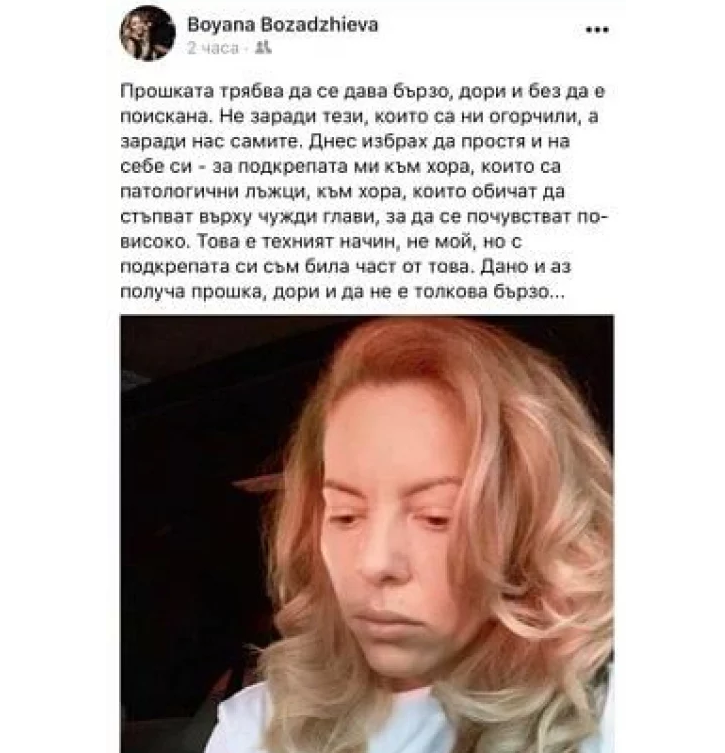 Бившата медийна съветничка на Корнелия Нинова Бояна Бозаджиева написа неочаквано откровен пост във Фейсбук по повод днешния празник Сирни Заговезни.