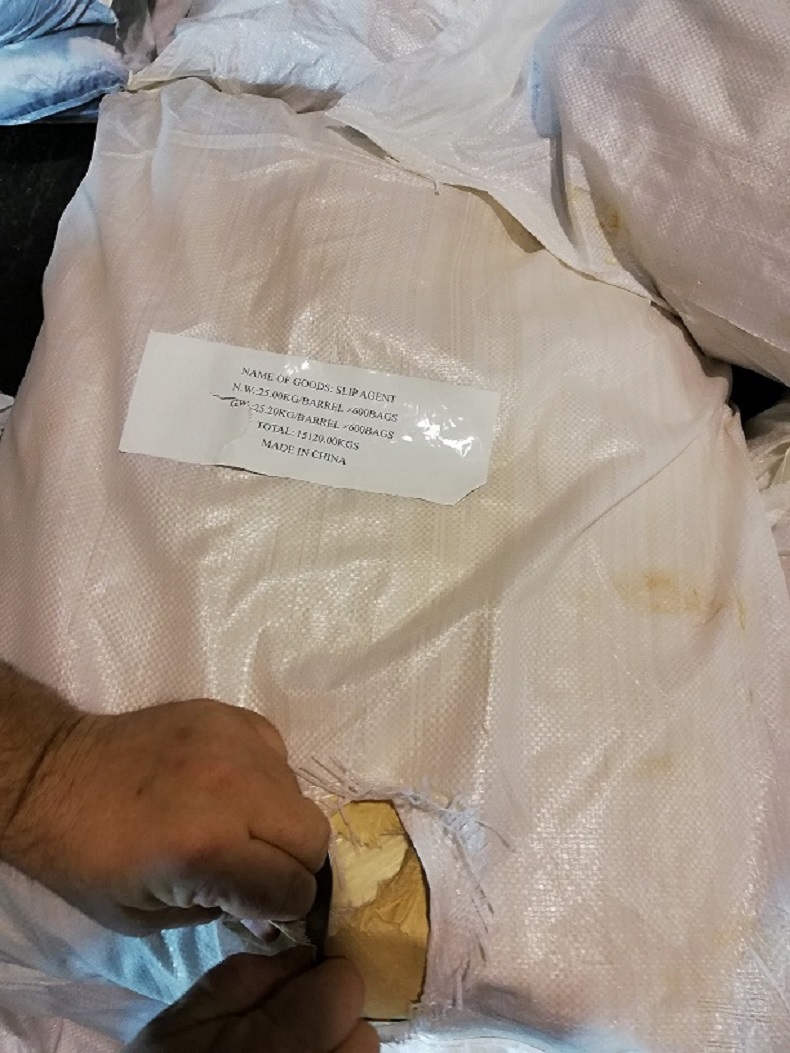 Стоката е пристигнала с контейнер от Китай, като е декларирана като лимонена киселина - 600 торби по 25 кг. По метода „анализ на риска", контейнерът попада в предварителната селекция на отделите „Митническо разузнаване и разследване" и „Борба с наркотрафика" в Митница Варна. Предвид спецификата на товара, на 25.05.2018 г. служители на отдел „Борба с наркотрафика" извършват физически контрол на стоката при пълно разтоварване.