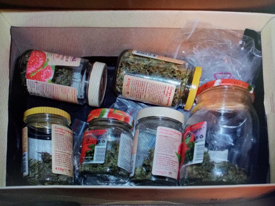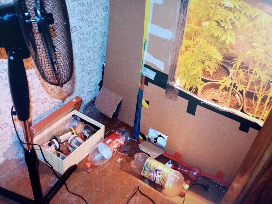 При претърсването са намерени и иззети уреди за контрол на влажността, на температурата, климатизация, аспиратори, лампи, везна и машинка за рязане. Открити са 10 насаждения от рода на конопа с височина около 1,5 метра, около 4 грама прахообразно вещество реагирало на екстази, 6 стъклени буркана пълни със съцветия от марихуана с тегло около 58 грама и 62 грама изсушени листа от марихуана.