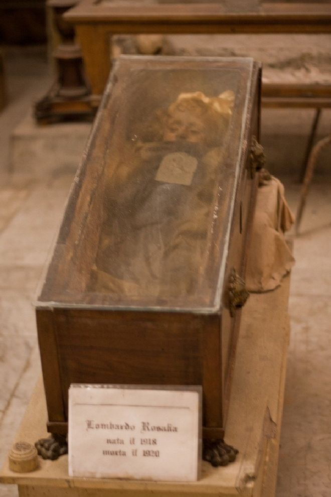 Малката Розалия Ломбардо била прекрасно дете. Тя обаче издъхнала на две годинки заради инфекциозно заболяване. Баща й, богат италианец, помолил свой приятел доктор да направи всичко възможно, за да не се превърне момиченцето в скелет. Това се случило през 1920 г.